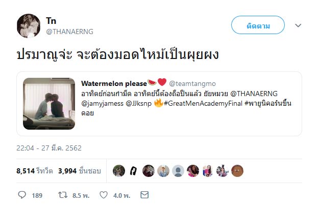 ภาพจาก Instagram jamyjamess, thanaerngnin, ทวิตเตอร์ #GreatMenAcademyFinal, ทวิตเตอร์ THANAERNG