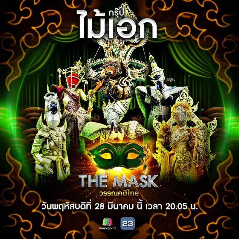 สำหรับ 6 หน้ากาก กรุ๊ปไม้เอก The Mask วรรณคดีไทย ได้แก่ หน้ากากม้าสีหมอก หน้ากากนางวันทอง หน้ากากบ่วงนาคบาศ หน้ากากหอยสังข์ หน้ากากรจนา และ หน้ากากราหูอมจันทร์ ซึ่งแต่ละคนมาในคอสตูมสุดอลังการ แต่ยังคงความละเอียดในดีเทล เรียกได้ว่าวิจิตรตระการตา จนหลายคนเห็นแล้วขนลุก