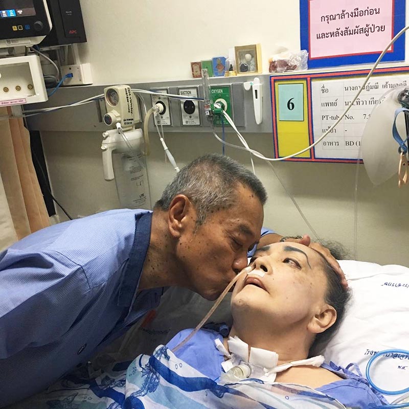 ตอนนี้รักษาคุณแม่ทุมตามอาการ ปกติคนที่เป็นโรคนี้อยู่ได้แค่ 48-50 เดือน แต่แม่ทุมอยู่ได้มา 6 ปี นี่คือปาฏิหาริย์และพลังแห่งความรักที่ทุกคนมอบให้ จึงทำให้แม่ต่อสู้โรคนี้ได้