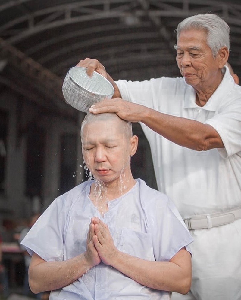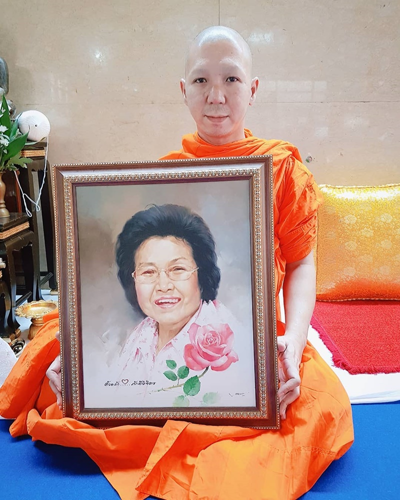 "12 เมษายน 62 เป็นวันครบรอบวันเกิดและวันเสียชีวิตของแม่ เราได้นิมนต์พระกู๊ดและหลวงพี่อีก 8 รูป มาทำบุญให้แม่ที่บ้านค่ะ ก่อนกลับพระกู๊ดบอกให้โยมพี่ช่วยถ่ายรูปกับโยมแม่ให้หน่อย กำลังถ่ายรูปให้จู่ ๆ น้ำตาพระก็ไหล บอกว่าคิดถึงแม่มาก ตั้งแต่เมื่องานที่ทำพิธีในโบสถ์ก็ตื้นตันและนึกถึงแม่ตลอด