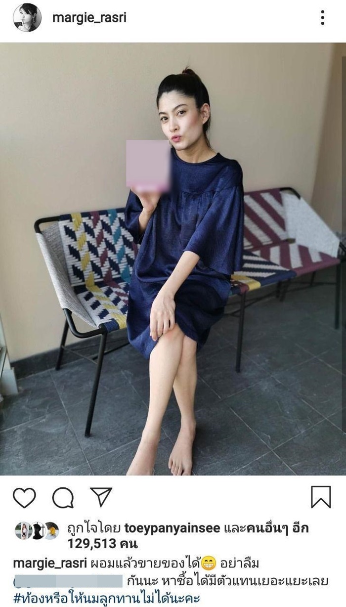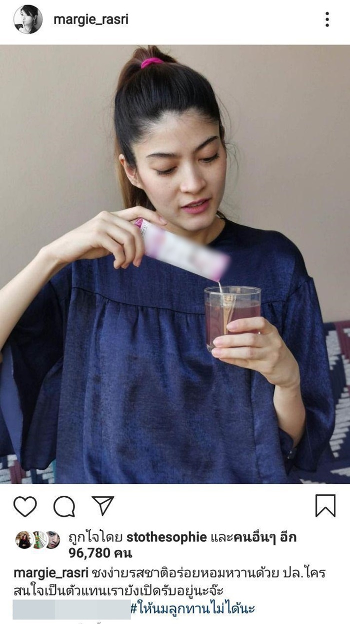 ขณะที่ใน IG ของสาวมาร์กี้ ก็มีลงรูปโปรโมตอาหารเสริมที่เจ้าตัวเป็นพรีเซ็นเตอร์ บอกว่า ผอมแล้วขายของได้ พร้อมแฮชแท็ก #ท้องหรือให้นมลูกทานไม่ได้นะคะ เป็นหมายเหตุไว้ แต่ก็ยังเป็นประเด็นขึ้นมา ในรูปที่สาวมาร์กี้ทำท่าชงอาหารเสริมดังกล่าว จนเหมือนตัวเองรับประทาน ทั้งที่อยู่ในระยะให้นมลูก