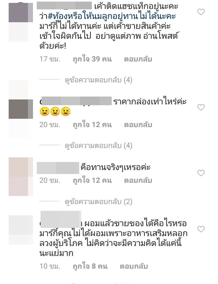 แม้สาวมาร์กี้จะระบุแคปชั่นว่า "ชงง่ายรสชาติอร่อยหอมหวานด้วย ป.ล. ใครสนใจเป็นตัวแทนเรายังเปิดรับอยู่นะจ๊ะ #ให้นมลูกทานไม่ได้นะ" แต่หลายคนก็ไม่โอเค มองว่าไม่เหมาะสม แม้จะระบุหมายเหตุไว้ในแคปชั่นว่าคนท้องหรือให้นมลูกกินไม่ได้ แต่ในเมื่อมาร์กี้เป็นคุณแม่เพิ่งคลอด แล้วมาโพสต์รูปเหมือนตัวเองกินแบบนี้ ก็ทำให้คนเข้าใจผิดได้อยู่ดี
