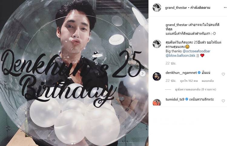 เรียกว่าเป็นวันเกิดที่แฮปปี้สุด ๆ สำหรับนักแสดงหนุ่ม อ้วน เด่นคุณ เลยก็ว่าได้ เมื่อหวานใจสาว แกรนด์ เดอะสตาร์ ได้หอบเค้กและลูกโป่งมาทำเซอร์ไพรส์วันคล้ายวันเกิดอายุครบ 25 ปี ให้เจ้าตัวแบบหวานสุด ๆ พร้อมข้อความถึงกันและกันอย่างน่ารัก
