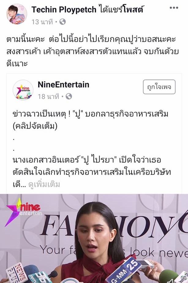 ดีเจมะตูม แชร์ข่าว ปู ไปรยา เปิดใจเรื่องเลิกทำอาหารเสริม ลั่นต่อไปนี้อย่าเรียก ปู ว่าบอส สงสารเค้า จบกันด้วยดีเนาะ แจงแชร์เพราะอยากกระจายข่าวให้ทุกคนทราบ ไม่ได้อยากให้คนไปรุมด่า