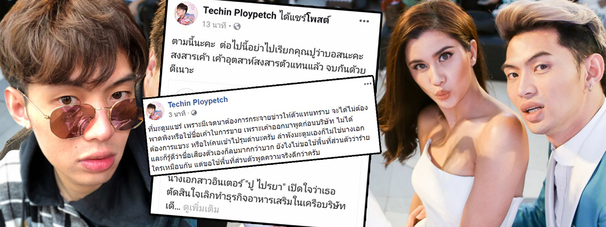 - สาวปู ออกมาให้สัมภาษณ์ว่า ไม่ได้ร่วมธุรกิจอาหารเสริมในเครือเดียวกันกับ ดีเจมะตูม และ ดีเจต้นหอม แล้ว พร้อมบอกว่าในตอนนั้นมองว่าวงการธุรกิจอาหารเสริมทำเงินได้ง่าย และเธอก็ไม่ได้เป็นหุ้นส่วนบริษัท เขาใช้ชื่อเสียงของเธอดึงดูดคนและยอดขาย โดยทุกครั้งที่เกิดเรื่อง ปู ไปรยา เป็นคนเดียวที่ออกมาพูด ไม่ว่าจะเพจไหนออกมาให้ข้อมูลอะไรก็ตาม ทั้ง ๆ ที่คนที่ควรออกมาพูดคือเจ้าของบริษัท แต่เธอก็มองว่าอโหสิกรรมให้ดีกว่า