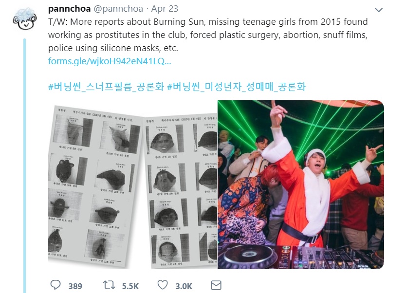 ซึ่งทางรายการ Straight ทางช่อง MBC เพิ่งเผยรายละเอียดสะเทือนขวัญของอาชญากรรมที่เกิดขึ้นภายในคลับ Burning Sun และ Arena ว่ามีการจัดพื้นที่พิเศษไว้สำหรับรองรับแขกกลุ่ม VVIPs ไว้ใช้ก่ออาชญากรรมต่าง ๆ เช่น ยาเสพติด ความรุนแรงทางเพศ เซ็กส์ซาดิสม์ ตลอดจนการถ่ายคลิป-ถ่ายหนังใต้ดินผิดกฎหมาย (Snuff Film) ซึ่งมีเหยื่อที่หนีออกไปได้ แต่กลายเป็นผู้ป่วยทางจิต และเด็กอีกคนถูกทำแท้งหลายครั้งจนต้องตัดมดลูก (อ่านเพิ่มเติม คลิก)