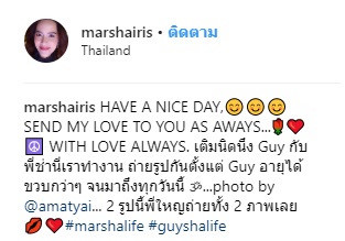 ล่าสุด (25 เมษายน 2562) มาช่า ได้โพสต์ภาพตอนที่ถ่ายแบบคู่ น้องกาย เมื่อ 28 ปีก่อน เทียบกับภาพปัจจุบัน โดยเขียนแคปชั่นว่า "HAVE A NICE DAY, SEND MY LOVE TO YOU AS AWAYS... WITH LOVE ALWAYS. เติมนิดนึง Guy กับ พี่ช่านี่เราทำงาน ถ่ายรูปกันตั้งแต่ Guy อายุได้ขวบกว่า ๆ จนมาถึงทุกวันนี้"