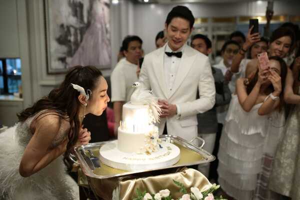 "ใจเย็น ๆ ค่ะทุกคน ภาพที่เห็นมันเป็นแค่งานปาร์ตี้วันเกิดของมินเท่านั้น ไม่ใช่งานแต่งงานอะไรค่ะ (หัวเราะ) คือปีนี้เราจัดในธีมหงส์ มันก็เลยเป็นชุดสีขาวขน ๆ เต็มไปหมด ส่วนคุณโอ๊ต ก็ใส่ชุดสูทสีขาวให้ตรงตามธีมเท่านั้น จริง ๆ ถ้าดูภาพทั้งหมดจะเห็นว่าเกือบทุกคนใส่ชุดขาวและมีขนเป็นหงส์เต็มไปหมดทั้งงานเลยนะ"