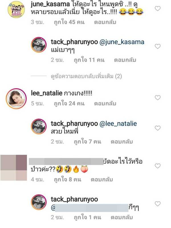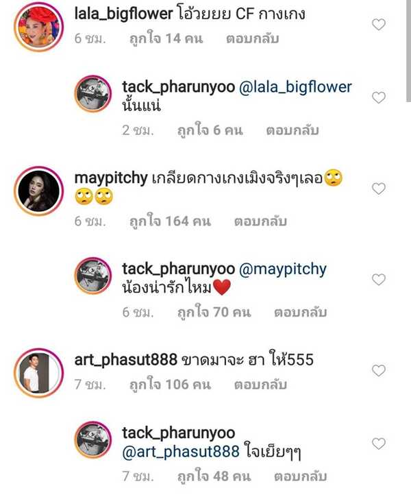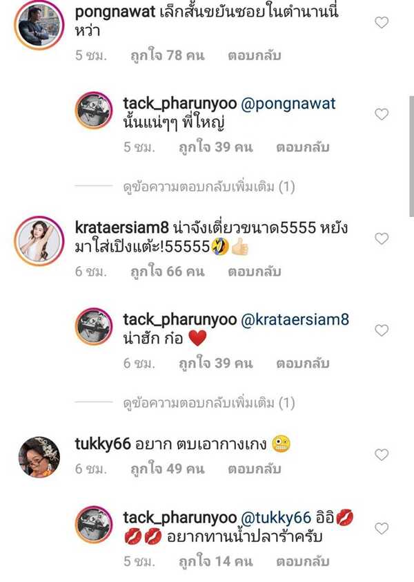 โดยคลิปดังกล่าว ทำเอาหลายคนโฟกัสไปที่จุดเดียว เพราะหนุ่ม แทค ภรัณยู สวมกางเกงขาสั้นลายหัวใจ เผยให้เห็นทั้งขาอ่อน และจุดสำคัญแบบชัด ๆ จนเพื่อน ๆ ดารา เข้ามาคอมเมนต์กันสนั่น ทั้งบอกว่าเกลียดกางเกง ถ้าขาดมาจะฮาให้