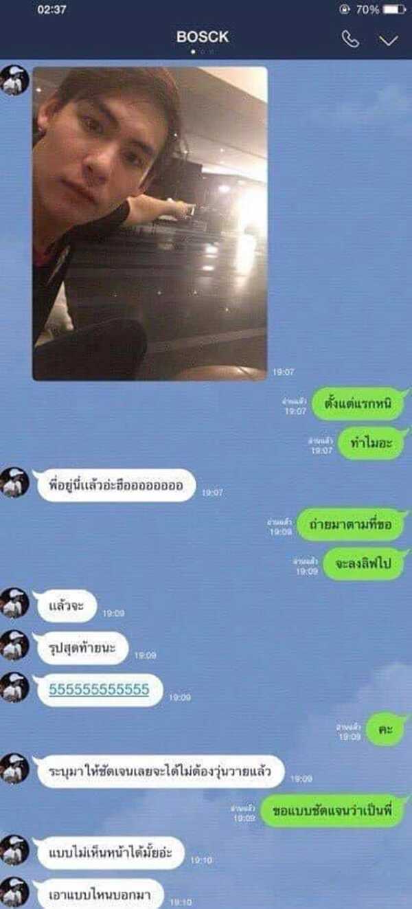 บอส : รูปนั้นเป็นรูปผม แต่ว่ามันนานแล้ว นานมาก แต่ว่าสุดท้ายแล้วมันมาผสมโรงกับแชตนั้นรวมกัน สุดท้ายมันก็เป็นอะไรที่ไม่จริง