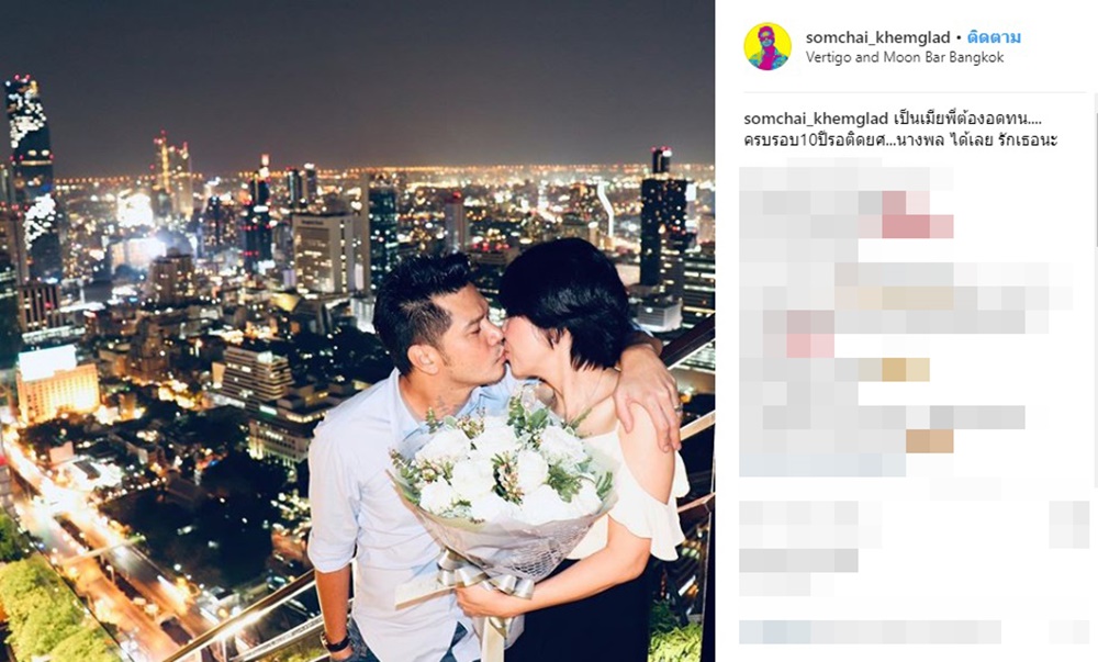 ด้าน เต๋า สมชาย ก็โพสต์ภาพสุดสวีตที่มีการจูจุ๊บกับภรรยาบ้าง พร้อมแคปชั่น "เป็นเมียพี่ต้องอดทน.... ครบรอบ 10 ปี รอติดยศ...นางพล ได้เลย รักเธอนะ" บอกเลยว่างานนี้เขินมากจริง ๆ เพราะทั้งภาพ ทั้งแคปชั่นน่ารักสุด ๆ ถึงภายนอกพี่จะดุดัน แต่การกระทำพี่สีชมพูนะจะบอกให้