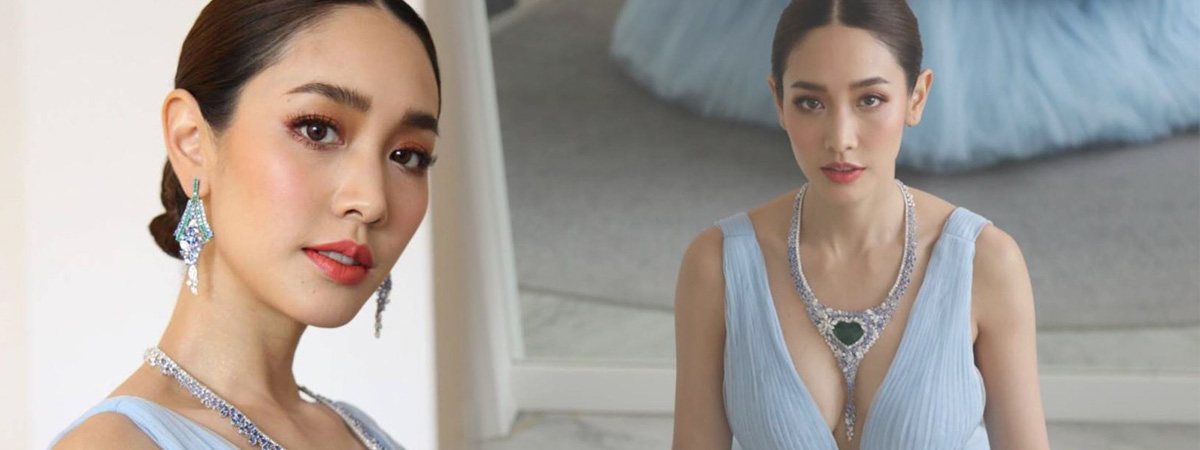 สำหรับลุคของ มิน พีชญา บนพรมแดงเทศกาลหนังเมืองคานส์ 2019 ก็มีความปังไม่แพ้ใคร กับชุดราตรีสีฟ้าอ่อน สวยหรูฟูฟ่อง จากแบรนด์ Ali Karoui Haute Couture พร้อมด้วยเครื่องประดับสุดอลังการ สร้อยมรกตล้อมเพชรและไพลิน 122 กะรัต มูลค่า 100 ล้านบาท จาก AVAKIAN ซึ่งลุคนี้ของสาวมิน ต้องบอกเลยว่าสวยงามสะกดตา ราวกับซินเดอเรลล่าในชีวิตจริงเลยทีเดียว ถ้าไม่เชื่อก็ตามไปชมกันเลยค่ะ