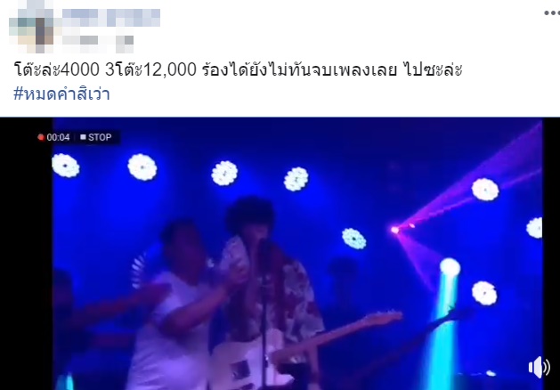 ทั้งนี้ทางเจ้าของโพสต์ยังระบุข้อความด้วยว่า "โต๊ะละ 4,000 3 โต๊ะ12,000 ร้องได้ยังไม่ทันจบเพลงเลย ไปซะละ #หมดคำสิเว่า" ซึ่งภายหลังจากที่มีการเผยแพร่คลิปดังกล่าว ชาวโซเชียลต่างแสดงความคิดเห็นถึงเรื่องนี้ว่า