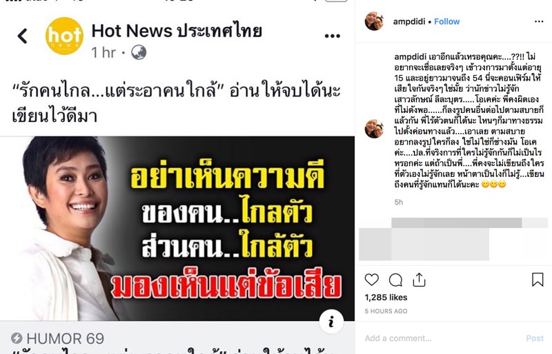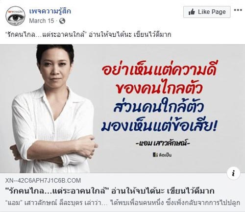 ล่าสุด (21 พฤษภาคม 2562) แอม เสาวลักษณ์ ก็ถึงกับออกอาการปลงหนัก เมื่อเว็บไซต์แห่งหนึ่ง ลงบทความที่แอมเคยตั้งสเตตัสเอาไว้ ในเรื่องที่เรามักจะมองข้ามคนใกล้ตัว และหันไปใส่ใจคนไกลตัว แต่เอาหน้า อุ๊ หฤทัย ใส่ลงไป