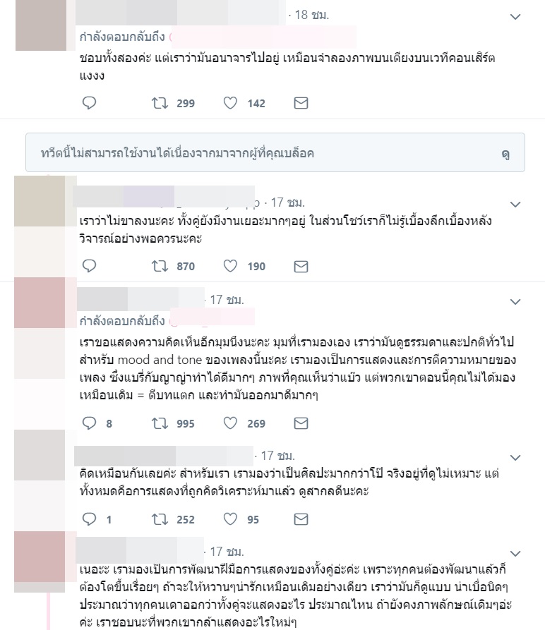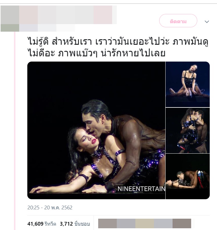อย่างไรก็ตาม ยังมีอีกส่วนที่มองว่า ภาพนิ่งหรือคลิปที่ถูกตัดมาบางส่วนอาจจะดูแรงเกินไป แต่หากดูโชว์เต็ม ๆ จะเข้าใจว่าเป็นการนำอารมณ์ของโชว์มาสู่ฉากดังกล่าว ซึ่งก็เป็นการแสดงที่เข้ากับเพลง ให้มองว่าเป็นการแสดง เป็นศิลปะ และโฟกัสที่การโชว์ศักยภาพของทั้งคู่ในโชว์นี้ที่ค่อนข้างยาก โดย ณเดชน์ ญาญ่า ทั้งร้อง ทั้งเต้น และยังสามารถแสดงอารมณ์ของโชว์ออกมาได้เป็นอย่างดีอีกด้วย