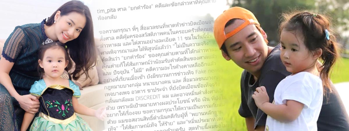 ล่าสุด (23 พฤษภาคม 2562) ทิม พิธา ได้โพสต์ข้อความในอินสตาแกรม ว่า เรื่องคดีคุ้มครองสวัสดิภาพและเรื่องความรุนแรงในครอบครัว ศาลได้ยกฟ้องแล้ว โดยศาลได้ใช้เวลาไต่สวนทั้งสิ้น 11 ชั่วโมง และต่ายเองก็ให้สัมภาษณ์ว่า เคารพคำตัดสินของศาล ปัจจุบันไม่มีคดีค้างคากันแล้ว