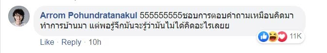 โดยคัดโตะ ซึ่งใช้ชื่อเฟซบุ๊ก Arrom Pohundratanakul ได้เข้ามาคอมเมนต์บอกว่า "55555555 ชอบการตอบคำถามเหมือนคิดมาทำการบ้านมา แต่พอรู้จักมันจะรู้ว่า มันไม่ได้คิดอะไรเลย" งานนี้ทำเอาบรรดาแฟน ๆ เข้าไปกดถูกใจกันยกใหญ่ ผ่านมาก็หลายดราม่าแล้ว ทั้งประเด็นเล็ก ประเด็นใหญ่ แต่คงต้องบอกว่า ไม่สามารถทำอะไรนักร้องหนุ่มหน้านิ่ง ท่าประจำชูสองนิ้วคนนี้ได้เลยจริง ๆ