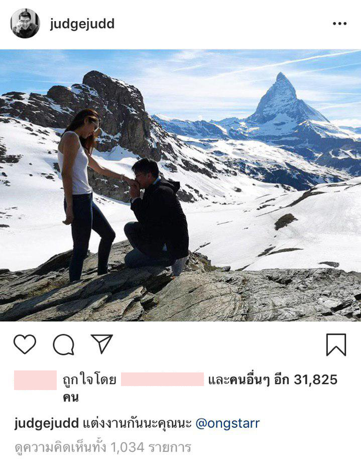 แต่ดูเหมือนจะไม่ใช่แค่ทริปสวีตกับแฟนสาวเท่านั้น จั๊ด ธีมะ ได้ควงแฟนสาวไปเที่ยวกันต่อที่เมืองเซอร์แมท ซึ่งเป็นเมืองชนบทในเทือกเขาแอลป์ ประเทศสวิตเซอร์แลนด์ และล่าสุด (1 มิถุนายน 2562) จั๊ด ธีมะ ได้คุกเข่าขอแฟนสาวแต่งงาน ท่ามกลางบรรยากาศเทือกเขาสุดอลังการ โรแมนติกมาก วิวสวยงามหลักร้อยล้านจริง ๆ โดยเจ้าตัวโพสต์ภาพพร้อมแคปชั่นว่า "แต่งงานกันนะคุณนะ @ongstarr"