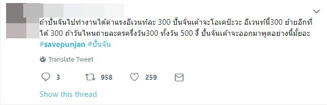 นอกจากนี้ ยังมีคนถามว่า หากสมมุติให้ปั้นจั่นออกอีเวนต์ และได้อีเวนต์ละ 300 บาท ถ่ายละครเต็มวัน 500 บาท ครึ่งวัน 300 บาท ปั้นจั่นจะยอมหรือไม่