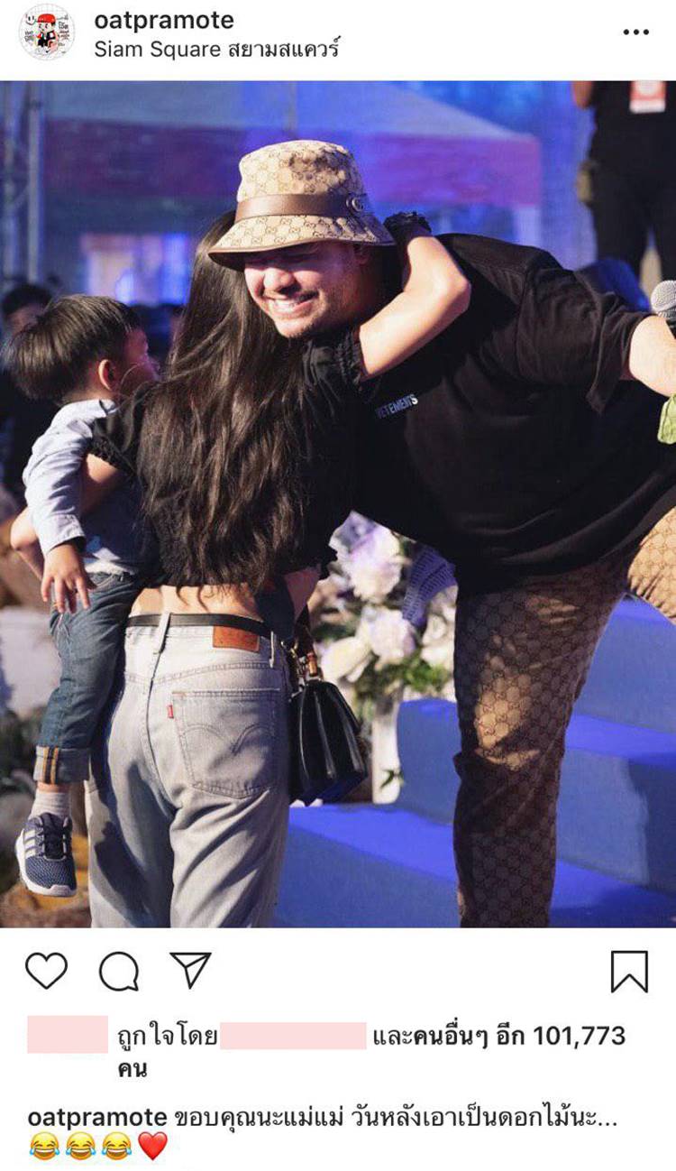 นับเป็นโมเมนต์ที่ทั้งจิ้น ทั้งฮาจริง ๆ ขณะที่หนุ่มโอ๊ต ก็ได้โพสต์ภาพขณะกอดสาวแพท พร้อมแคปชั่นว่า "ขอบคุณนะแม่แม่ วันหลังเอาเป็นดอกไม้นะ" ทำเอากองเชียร์กระหน่ำแซวอีกครั้ง น่ารักไม่เบาเลยจริง ๆ คู่นี้