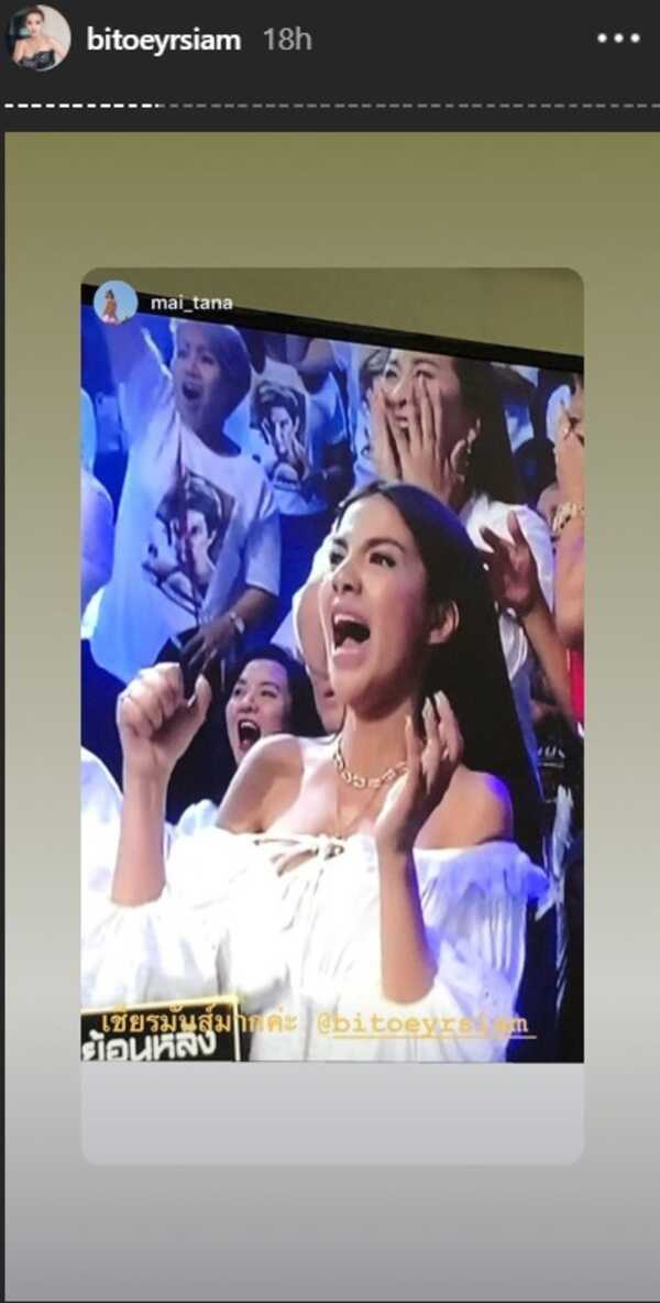 โดยงานนี้สาวใบเตย ทั้งลุ้น ทั้งเชียร์แบบสุดตัว จนมีผู้ชมเห็นแล้วประทับใจ นำภาพช้าย้อนหลังในชอตที่ใบเตยเชียร์ดีเจแมน มาทำ GIF ในทวิตเตอร์ พร้อมข้อความว่า "ยืนหนึ่งในวงการเชียร์สา #10Fight10" ซึ่งโมเมนต์ดังกล่าว ก็ทำเอาหลายคนเข้ามาชมว่าน่ารักมาก ๆ ขณะเดียวกัน ก็มีแฟน ๆ แคปชอตเด็ดลง IG Story แท็กหาใบเตยกันเพียบ