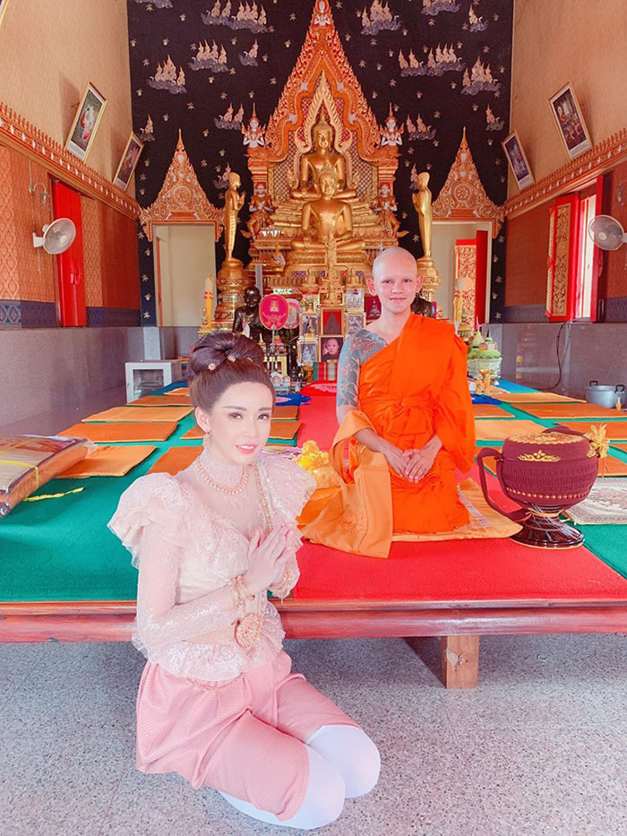 วันที่โกนผมนาค ก็ไม่มาร่วมโกน ทั้งที่ตนนับถือเหมือนแม่ ตนรอนานมากแต่ก็ไม่มาสักที มาตอนใส่ชุดนาคแล้ว มาถึงก็มาถ่ายรูปโพสต์ว่าดีใจมากที่ได้บวชขนเพชร ทุกสิ่งทุกอย่างในชีวิตตนเป็นคอนเทนต์ไปหมด ตนถึงกับน้ำตาไหล