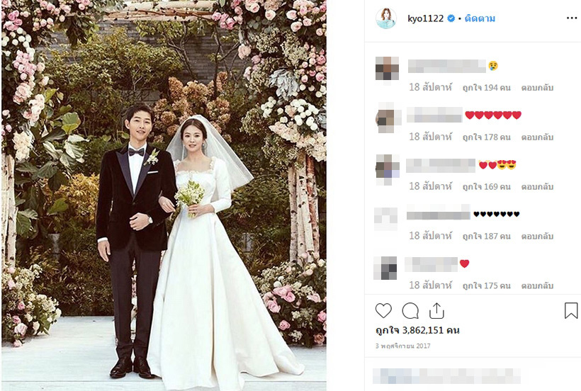 ทั้งนี้ เมื่อลองไปดูในอินสตาแกรมของ ซองเฮเคียว ที่ใช้ชื่อ Kyo1122 จะพบว่า ซองเฮเคียวนั้น ยังไม่ได้ลบภาพความทรงจำดี ๆ ที่มีต่อซงจุงกิทิ้ง โดยเฉพาะช่วงที่ทั้งคู่ถ่ายทำ Descendants of the Sun ซึ่งเป็นจุดเริ่มต้นความรัก และภาพการแต่งงาน ของทั้งคู่ ส่วนที่มีข่าวว่า ซองเฮเคียวลบภาพซงจุงกินั้น พบว่าเป็นเพียงข่าวลือเท่านั้น