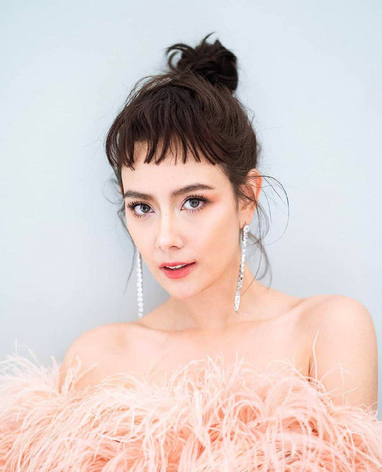 9. ใบเฟิร์น พิมพ์ชนก ในลุคผมม้าหนา พร้อมม้วนลอนด้านข้างเบา ๆ มีความน่ารักแบบฝรั่ง