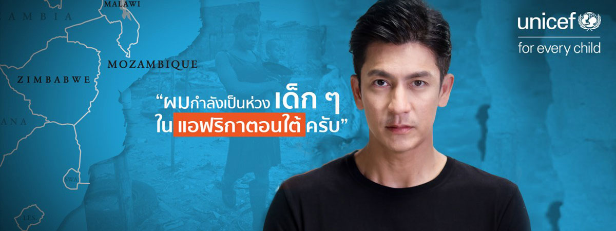 จากกรณีที่ ยูนิเซฟ ประเทศไทย เปิดตัวโครงการ #ไทยช่วยภัยไซโคลน เพื่อร่วมสมทบทุนช่วยเหลือเด็ก ๆ และครอบครัว ที่ประสบภัยจากพายุไซโคลนพัดถล่มแอฟริกาใต้ งานนี้ได้พระเอกหนุ่ม ติ๊ก เจษฎาภรณ์ เป็นตัวแทนภารกิจพิเศษ ลงพื้นที่เยี่ยมเยียน และให้กำลังใจผู้ประสบภัยในประเทศโมซัมบิก