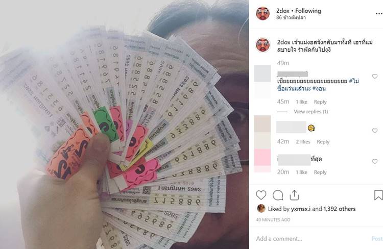 เป็นอีกหนึ่งคนดังดวงเฮง ที่ถูกหวยบ่อยมาก ๆ แถมงวดละหลายใบอีกต่างหาก สำหรับ สอง พาราด็อกซ์ ที่ล่าสุด (1 กรกฎาคม 2562) เจ้าตัวได้โพสต์ภาพลอตเตอรี่ชุดใหญ่ลง IG เยอะจนสามารถกางมาเป็นพัดได้ พร้อมเผยว่า "เจ้าแม่งอสจังกลับมาทั้งที เอาที่แม่สบายใจ รำพัดกันไปงุงิ"