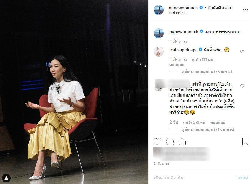 ส่วนที่เป็นประเด็นดราม่าอยู่ตอนนี้ พี่อ้อยเชื่อว่าหลายคนยังไม่ได้ดู แต่พอมีคนเฮไปทางความคิดเห็นนี้ คนก็เลยเฮตาม ตนอยากวอนให้ไปดูก่อน หากได้ดูแล้ว ตนเชื่อว่าต้องเข้าใจเจตนาดีของคุณเขตต์อย่างแน่นอน