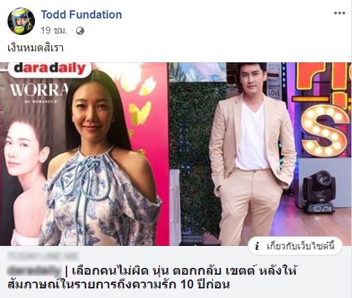 - อ่านข่าว : เอาแล้ว ต๊อด ปิติ แชร์ภาพ นุ่น - เขตต์ โยงเรื่องความหลัง ลั่น เงินหมดสิเรา