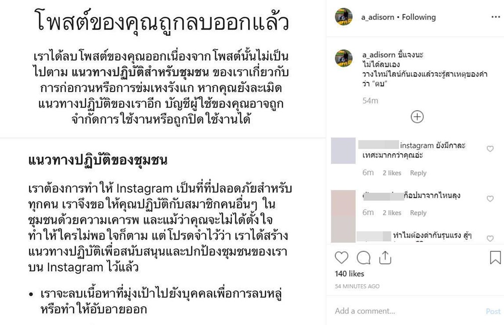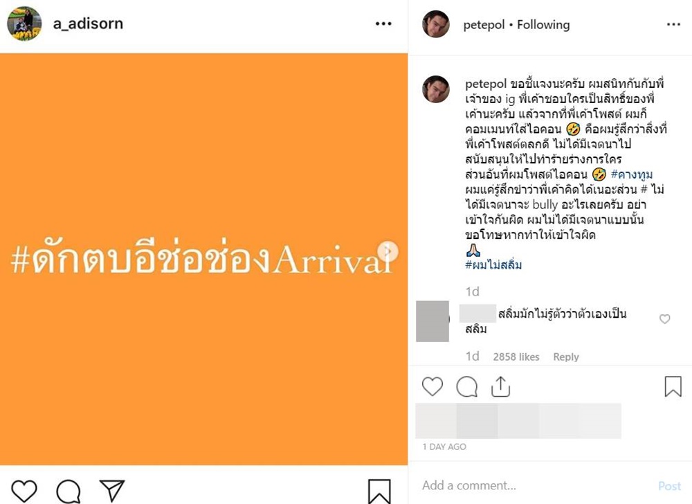 โดยโพสต์ก่อนหน้านี้ของ เอ อดิศร ที่มีการโพสต์ด่า "อีช่อ" เป็นช่วงวันที่ 11-13 มิถุนายน ที่ผ่านมา ก่อนที่ปัจจุบัน IG a_adisorn จะถูกล็อก ตั้งเป็นส่วนตัวแล้ว