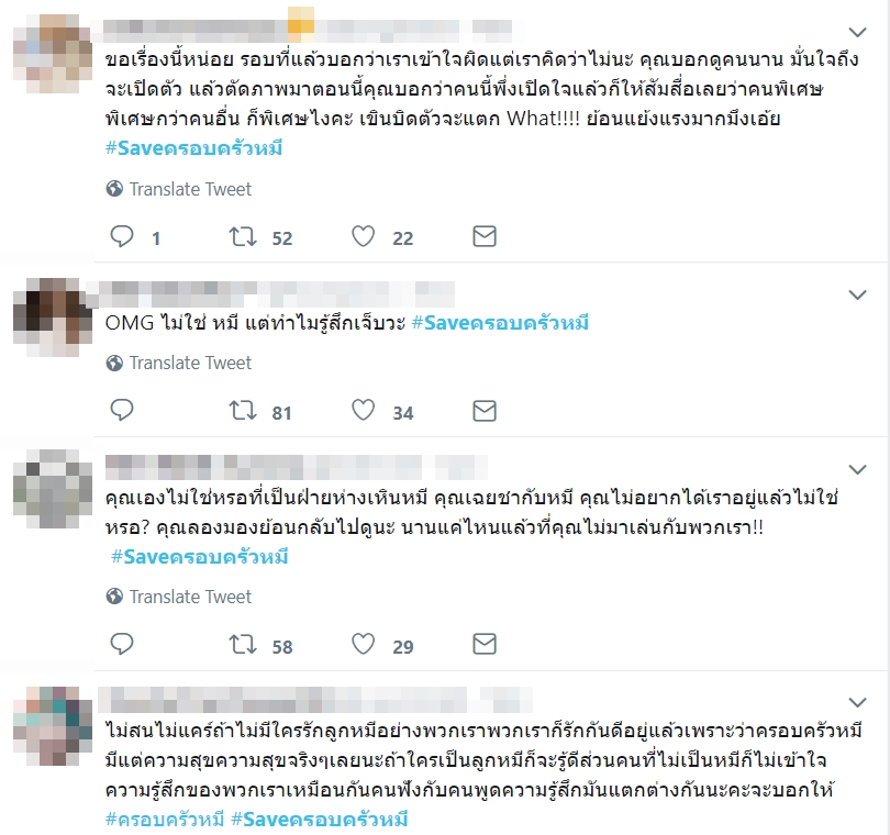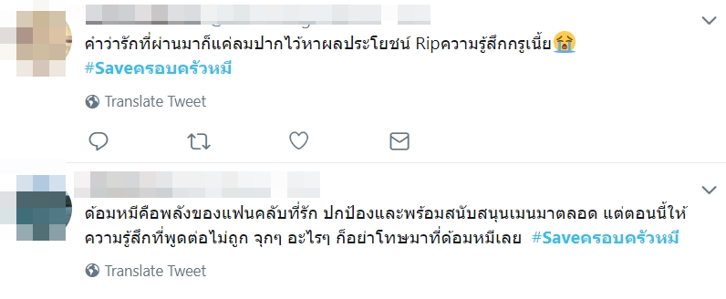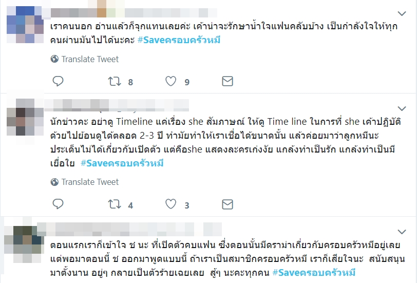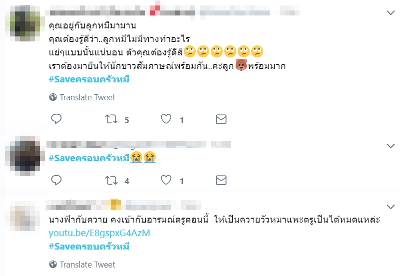 ล่าสุด (9 กรกฎาคม 2562) ได้มีการทวีตข้อความถึงสัมภาษณ์ดังกล่าวของ เชียร์ ฑิฆัมพร จนดันแฮชแท็ก #Saveครอบครัวหมี ขึ้นเทรนด์ทวิตเตอร์ โดยบอกว่า คำว่ารักที่ผ่านมาก็แค่ลมปากไว้หาผลประโยชน์ คุณอยู่กับลูกหมีมามานคุณต้องรู้ดีว่า ลูกหมีไม่มีทางทำอะไรแย่ ๆ แบบนั้นแน่นอน สนับสนุนมาตั้งนาน อยู่ ๆ กลายเป็นตัวร้ายเฉยเลย