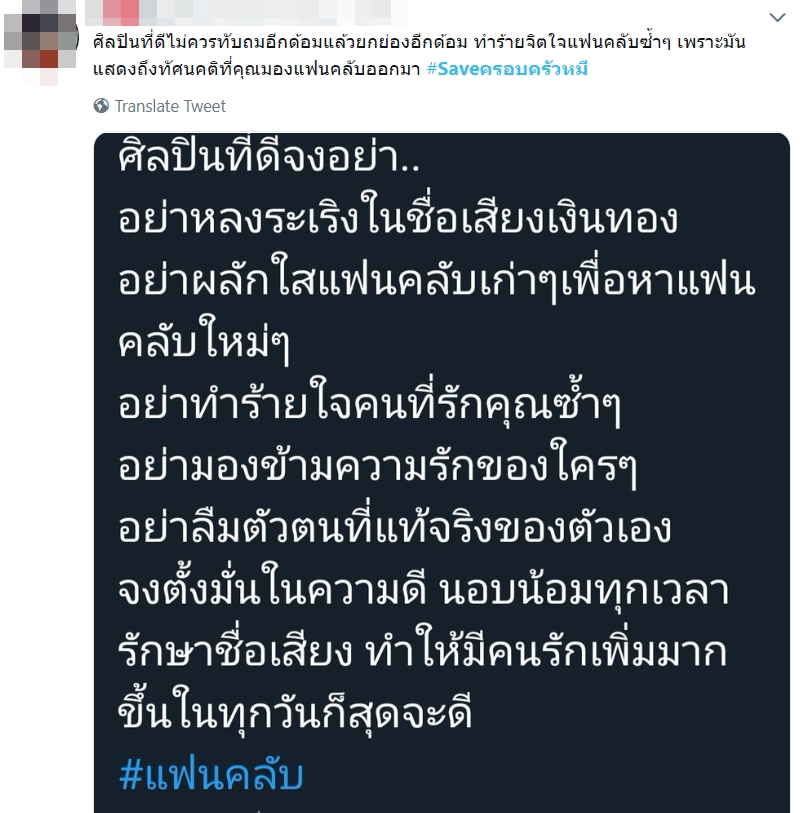 เชียร์ ฑิฆัมพร งานเข้าอีก แฮชแท็กทวิตเตอร์ #Saveครอบครัวหมี ขึ้นเทรนด์ ชี้ไม่รักษาน้ำใจ ผลักแฟนคลับเป็นตัวร้าย คำว่ารักที่ผ่านมาก็แค่ลมปากเท่านั้น
