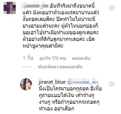 ล่าสุดเมื่อวันที่ 10 กรกฎาคม 2562 ผู้สื่อข่าวรายงานว่า ขณะนี้อินสตาแกรม @jirarat_blue ของ บลู จิรารัตน์ กำลังเดือดขั้นสุด หลังจากที่เจ้าตัวได้โผล่ตอบคอมเมนต์ด้วยข้อความสุดเกรี้ยวกราด หลังเธอออกมาเคลื่อนไหวอีกครั้งด้วยภาพบิกินี่สีขาว พร้อมแคปชั่น "What the f…..?"