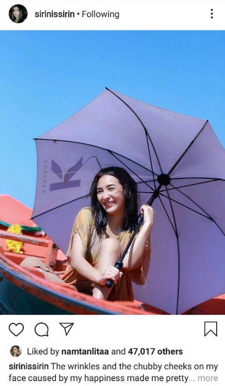 "รอยย่นบนใบหน้าและแก้มอ้วน ๆ ที่เกิดจากความสุขนี้ มันทำให้ฉันสวยขึ้น ฉันอยากบอกว่าฉันรักชีวิตตัวเองในตอนนี้มาก ๆ มันไม่มีอะไรที่ฉันปรารถนา และมันไม่มีความเปลี่ยนแปลงอะไรที่ฉันอยากให้มันเกิดขึ้น