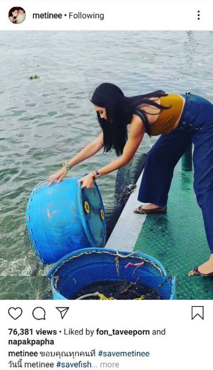 ทางด้าน ลูกเกด เมทินี ก็ได้โพสต์อินสตาแกรมแชร์คลิปขณะตัวเองไปปล่อยปลา พร้อมระบุแคปชั่นว่า "ขอบคุณทุกคนที่ #savemetinee วันนี้ metinee #savefish "