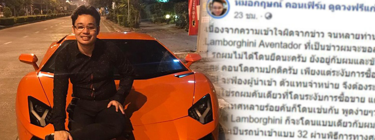 เนื่องจากความเข้าใจผิดจากข่าว จนหลายท่านเป็นห่วงผมในเรื่องรถ Lamborghini Aventador ที่เป็นข่าวผมจะขอสรุปให้ฟังดังนี้ครับ