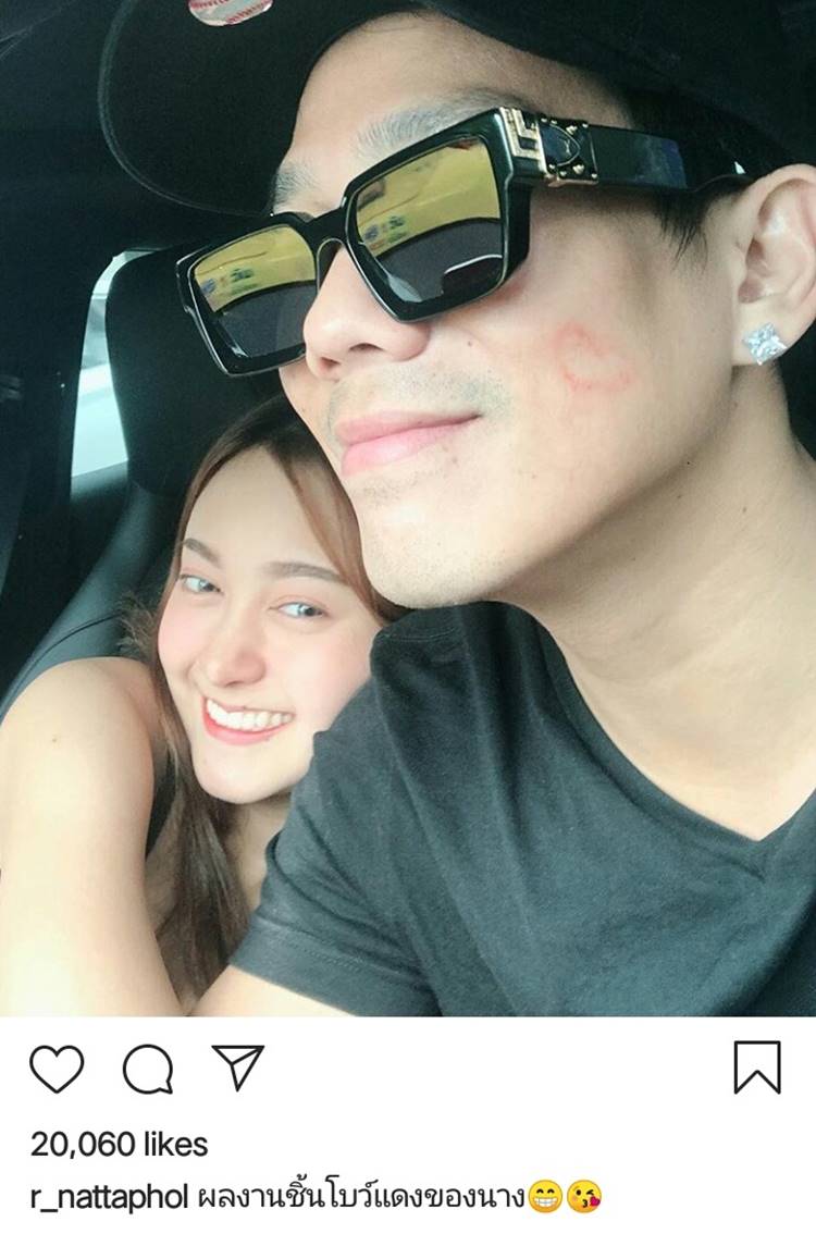 โดยเจ้าตัวได้โพสต์ภาพคู่กับสาวเอื้อย ซึ่งดูเผิน ๆ ก็เหมือนเป็นรูปคู่ตามปกติ แต่ถ้าสังเกตดี ๆ ก็จะเห็นรอยจุ๊บสีแดงระเรื่อที่แก้มของหนุ่มอาร์ได้ไม่ยาก พร้อมกับแคปชั่นชวนเขินว่า "ผลงานชิ้นโบว์แดงของนาง" ทางด้านเจ้าของผลงานสุดหวานอย่างน้องเอื้อยก็เอียงซบหนุ่มอาร์อยู่ไม่ห่าง