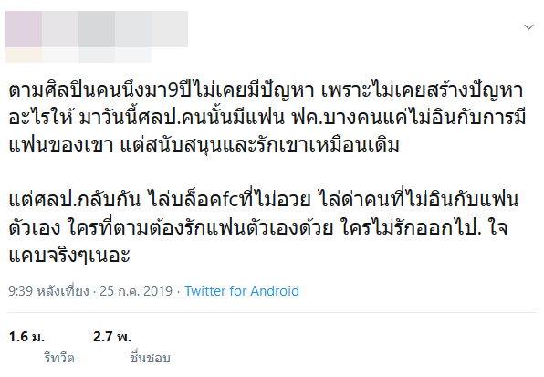 กลายเป็นประเด็นที่ทำเอาขาเมาท์ถกกันสนั่นเลยทีเดียว หลังมีผู้ใช้งานในทวิตเตอร์ ออกมาโพสต์ข้อความ โดนศิลปินที่ตาม 9 ปี ไล่บล็อกแฟนคลับที่ไม่อวยและไม่อินกับการที่เจ้าตัวมีแฟน ทั้ง ๆ ที่แฟนคลับที่โดนบล็อกไม่ได้แอนตี้ที่เจ้าตัวมีแฟน ซึ่งก็มีหลายคนคาดเดาไปต่าง ๆ นานา ว่าศิลปินคนดังกล่าวเป็นใคร ซึ่งหนึ่งในนั้นก็มีชื่อของนักร้องหนุ่ม กัน นภัทร ที่เพิ่งเปิดตัวหวานกับนักแสดงสาว มารี เบรินเนอร์ อยู่ด้วย
