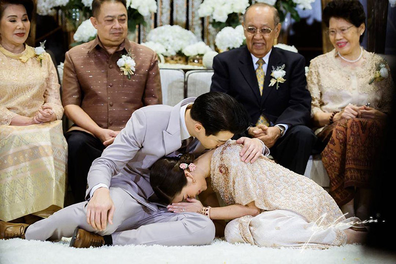 โดยชุดภาพตอนสวมแหวนแต่งงานเป็นอีกโมเมนต์ที่น่าจดจำเป็นอย่างมาก เนื่องจากมีช่วงที่เจ้าสาวต้องก้มกราบตักเจ้าบ่าว แต่แทนที่เจ้าบ่าวจะทำท่าโอ้อวดโชว์พาว กลับก้มลงหอม และกอดเจ้าสาวอย่างอบอุ่น ไม่แสดงท่าทางว่าตัวเองอยู่เหนือกว่าภรรยาเลยแม้แต่น้อย