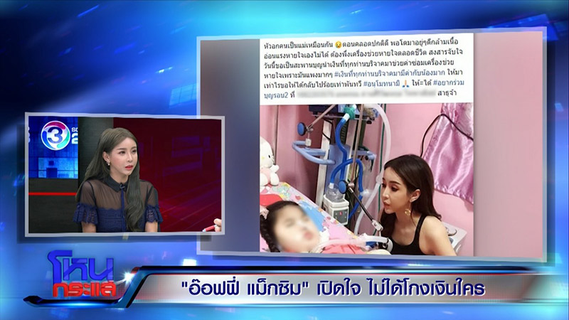 ออฟฟี่ : ใช่ค่ะ ในคลิปนั้นท้ายคลิปเป็นบัญชีคุณแม่น้องเขาเลย แล้วหนูก็มาโพสต์ทีหลังว่าจะช่วยเรื่องเครื่องหายใจ