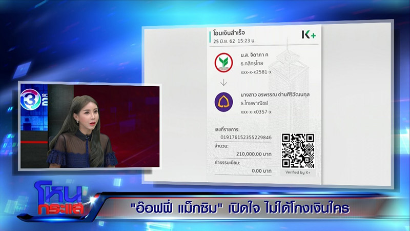 ออฟฟี่ : เป็นการโอนมาหาหนู 1 หมื่นบาท เป็นเจ้าของแบรนด์ หนูก็ใส่ย่ามให้เขา จริง ๆ แล้ว 6 แสนที่เขาเอามาให้ หนูว่าบวชได้หลายรูปเลยนะคะ