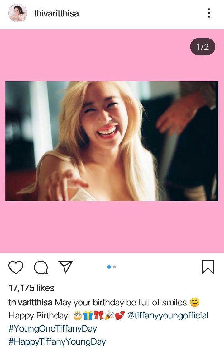 ทางด้าน เชียร์ ฑิฆัมพร ก็ได้มีการโพสต์ภาพของตัวเองกับทิฟฟานี่เมื่อ 7 ปีก่อน มาอวยพรวันเกิดให้สาวทิฟฟานี่ ส่วนสาวฐิสาก็มีการโพสต์ภาพอวยพรวันเกิดให้กับสาวทิฟฟานี่ เป็นภาพน่ารัก ๆ ที่เห็นแล้วต้องยิ้มตาม สมฉายา Smile Killer ของทิฟฟานี่จริง ๆ