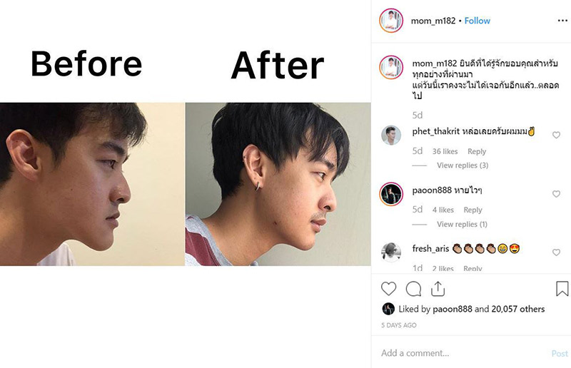 โดยก่อนหน้านี้ หม่อมเอ็ม ก็ได้โพสต์ภาพ Before-After ก่อน-หลังผ่าตัดขากรรไกร ลงใน IG ให้ได้ชมกันแบบชัด ๆ พร้อมบอกลาหน้าเก่า ด้วยแคปชั่นว่า "ยินดีที่ได้รู้จักขอบคุณสำหรับทุกอย่างที่ผ่านมา แต่วันนี้เราคงจะไม่ได้เจอกันอีกแล้ว..ตลอดไป"