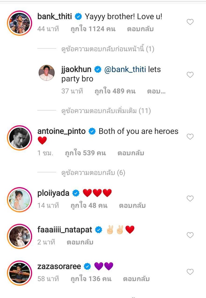 ทางด้าน แบงค์ ธิติ ก็ได้เข้ามาคอมเมนต์ตอบกลับโพสต์ดังกล่าวว่า "Yayyy brother ! Love u !" เป็นการแสดงถึงมิตรภาพดี ๆ หลังการแข่งขัน ซึ่งก่อนหน้านี้ แบงค์ก็ได้โพสต์ถึงเจ้าขุนใน IG ด้วยว่า "We did it brother ! เมื่อคืนเป็นประสบการณ์ที่ดีมาก ๆ ในชีวิตผม ขอบคุณ @jjaokhun ที่สู้กันอย่างเต็มที่ มันส์มาก !! พวกเราทำกันเต็มที่แล้ว ถึงเวลาพักผ่อน 5555555555555"