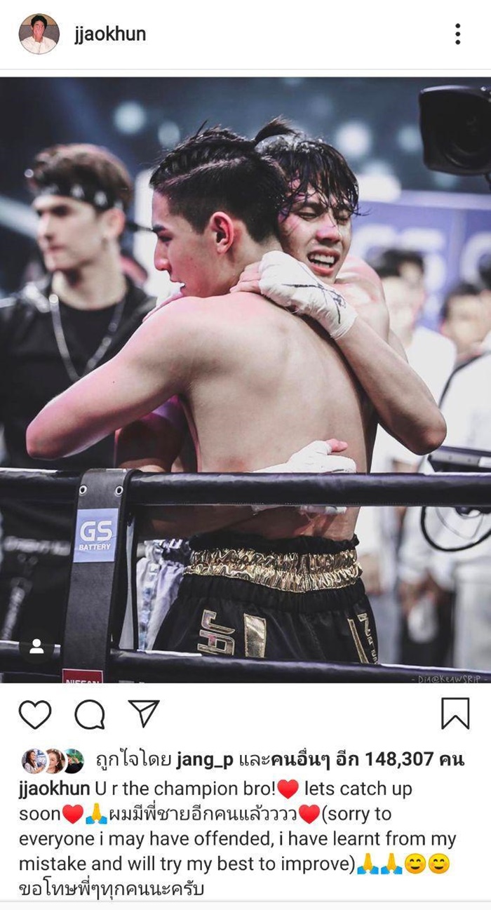 "U r the champion bro ! lets catch up soon ผมมีพี่ชายอีกคนแล้วววว (sorry to everyone i may have offended, i have learnt from my mistake and will try my best to improve) ขอโทษพี่ ๆ ทุกคนนะครับ"