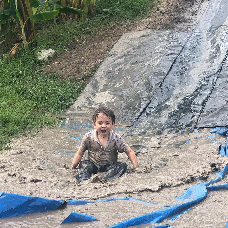 ส่วนไฮไลต์เด็ดที่น้องลูก้าดูจะชอบเป็นพิเศษ ก็คงจะเป็นการเล่นสไลด์ลุยดินโคลน ที่ถึงแม้จะตัวเลอะเปรอะเปื้อน แต่ก็ทำให้เจ้าตัวสนุกสุดขีด ไม่มีงอแงแม้แต่น้อย ดูได้จากภาพที่คุณแม่ถ่ายมาโพสต์ ทำเอาหลายคนเห็นแล้วยิ้มตามกันเลยทีเดียว