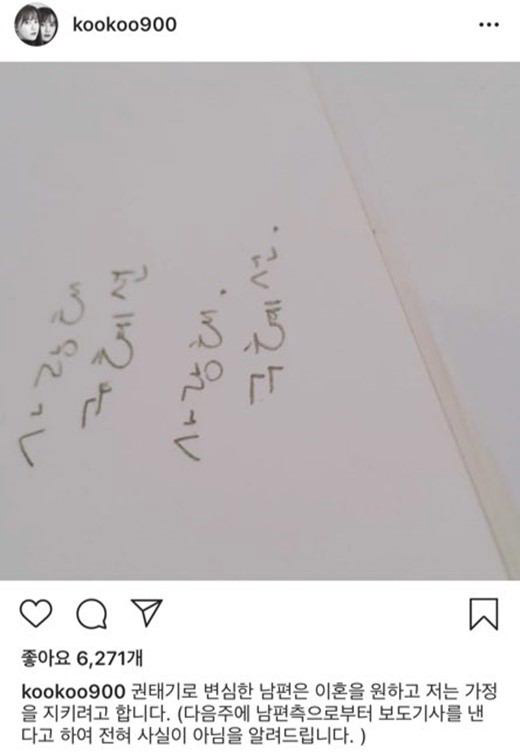 โดยฝ่ายหญิง คูฮเยซอน เป็นคนออกมาโพสต์เปิดเผยเรื่องราวความรักที่ผิดหวังด้วยตัวเอง ภายหลังจากสุดที่จะยื้อเอาไว้ได้ เว็บไซต์ Soompi เผยว่า คูฮเยซอน ได้โพสต์รูปภาพลงไอจีของเธอ ในภาพเขียนว่า "ฉันรักคุณ-คูฮเยซอน, ฉันรักคุณ-คูฮเยซอน" พร้อมกับแคปชั่นบอกว่า "หลังจากที่เราหมดความปรารถนาต่อกัน สามีของฉันเปลี่ยนใจไป และเขาต้องการหย่า แต่ฉันต้องการที่จะเป็นแบบเดิม (สัปดาห์หน้า ทางตัวแทนของสามีฉันจะเผยแถลงการณ์เรื่องนี้ และฉันจะบอกคุณว่า สิ่งที่พวกเขาพูดไม่เป็นความจริงทั้งสิ้น ฉันหวังว่าความจริงจะปรากฏ)